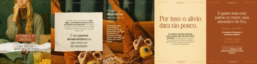 Gosto de trabalhar com psicólogos porque gosto da complexidade. De entender comportamento, de mergulhar nas camadas da mente e traduzir tudo isso em conteúdo que não só atrai, mas toca no outro, explica, posiciona.