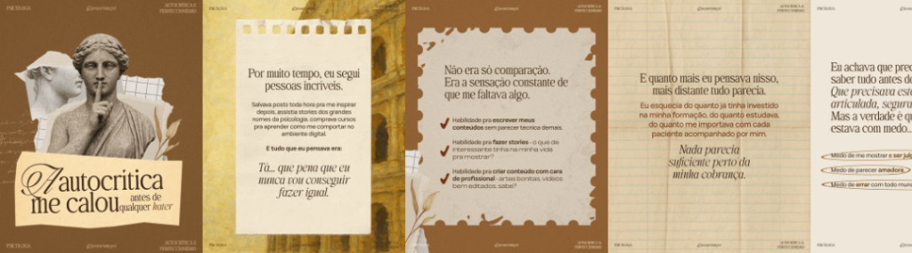 Já trabalhei com mais de 20 psicólogos, criando conteúdo, estruturando perfis e construindo estratégias de posicionamento que realmente funcionam, tanto na estética quanto na comunicação e no processo de vendas.