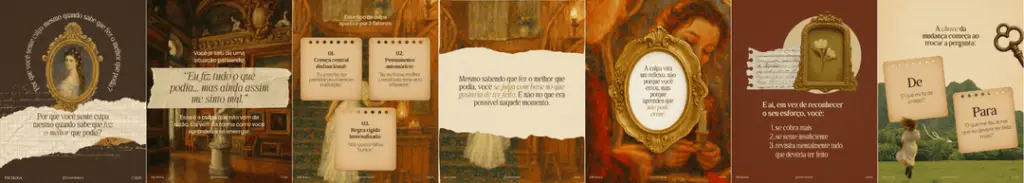 Sim, o design da coleção é exclusivo, estilo colagem clássica com tom acolhedor e criativo. Você pode adaptar imagens, cores e fontes se desejar.